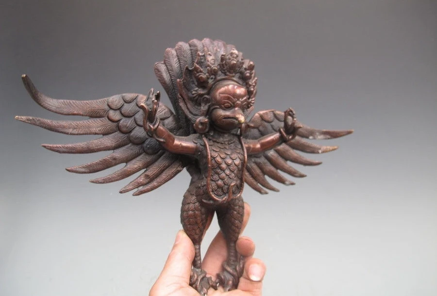 Best Copper Brass craft 12"Tibet Buddhism Pure BRASS Garuda Bird VaJra Buddha Wall hanging Statue a 0518