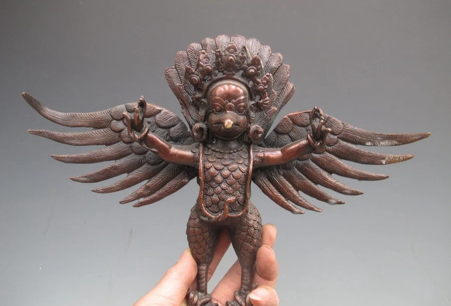 Hot Sale Copper Brass craft 12"Tibet Buddhism Pure BRASS Garuda Bird VaJra Buddha Wall hanging Statue a 0518