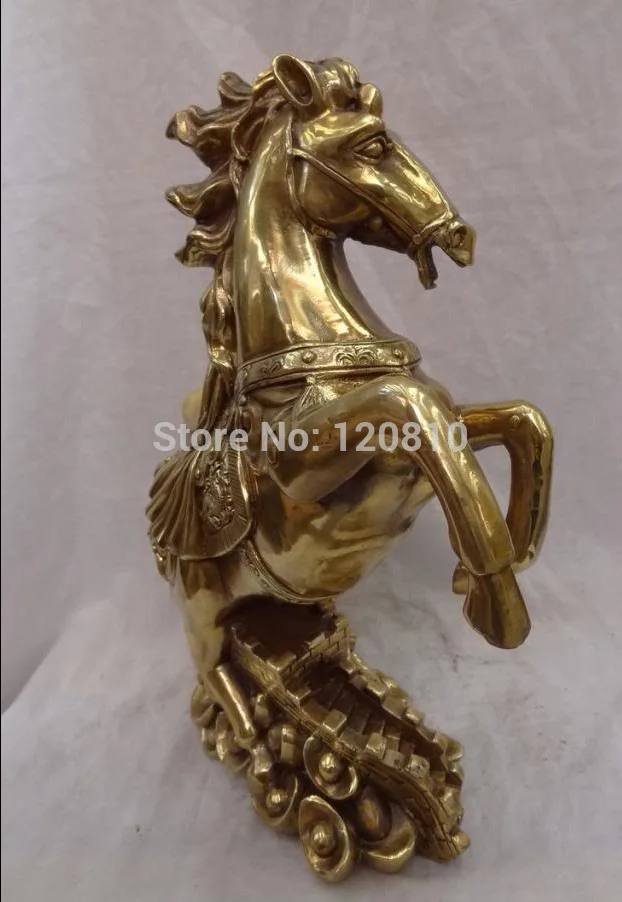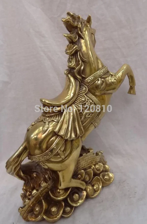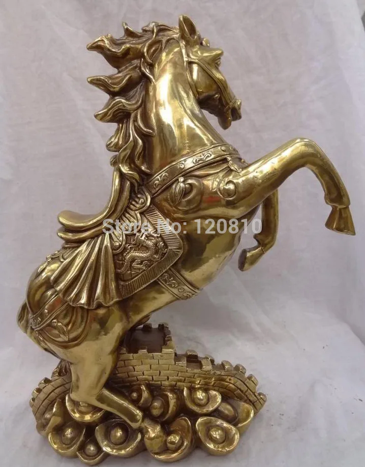 HOT SALE 15" Chinese Brass Animals YuanBao Wealth FengShui Horse On Great Wall Statue
