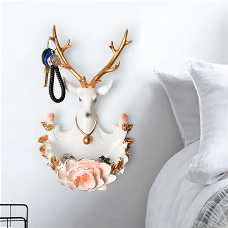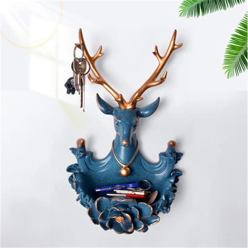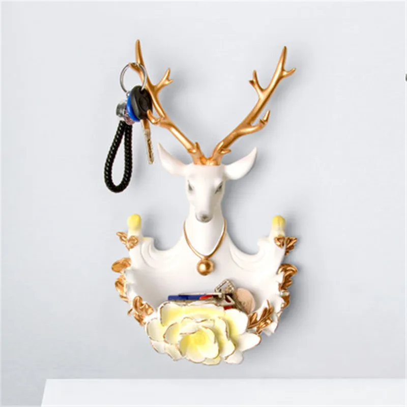 Deer Head Key Storage Rack Statue Home Decor Accessories Hook Commodity Shelf Wall Hang Living Room