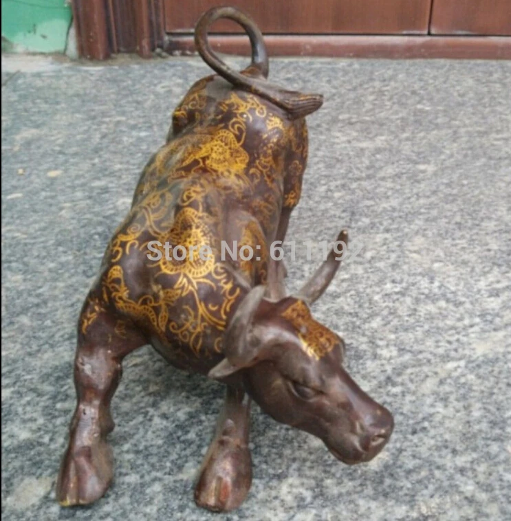 REVIEW TOP SELLER 8inch Big Wall Street Bronze Fierce Bull Decorative pattern OX Sculpture/statue home Feng Shui deco