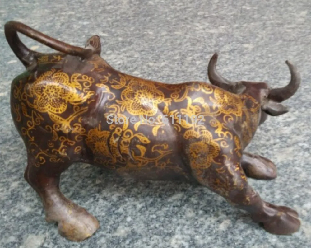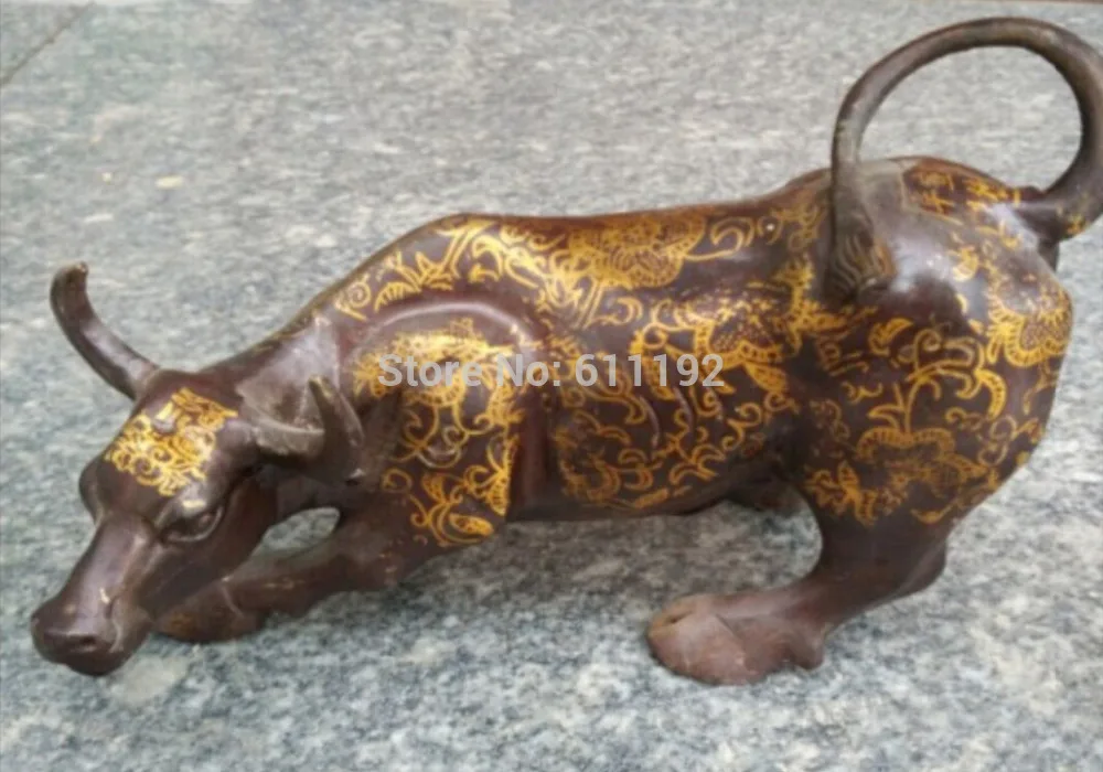 8inch Big Wall Street Bronze Fierce Bull Decorative pattern OX Sculpture/statue home Feng Shui deco