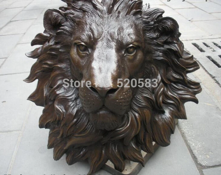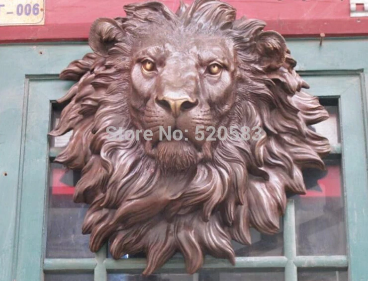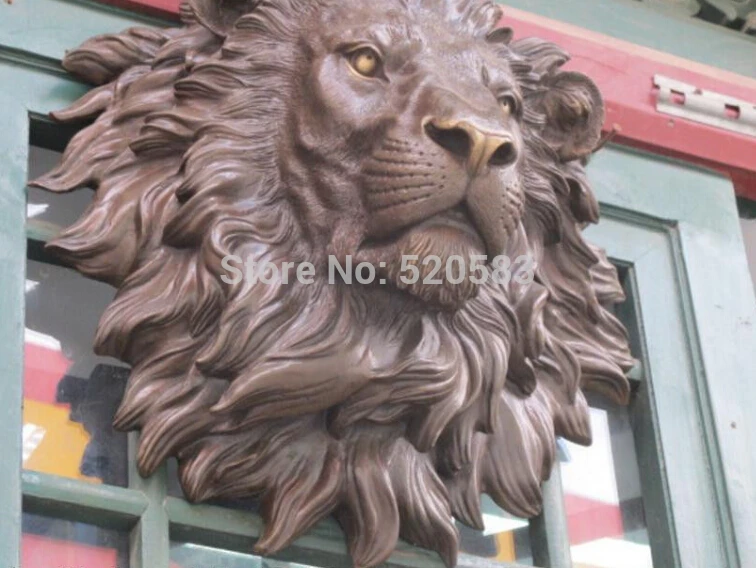 REVIEW TOP SELLER Chinese Pure Bronze HSBC Lions Head Wall Hang Family Decor Art Sculpture