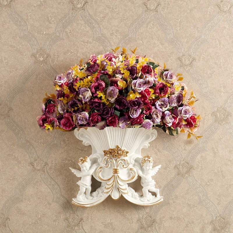 Wall Hanging Statue Ornament Home Decoration Flowers Arranging Angel Sculpture Background Decorativ