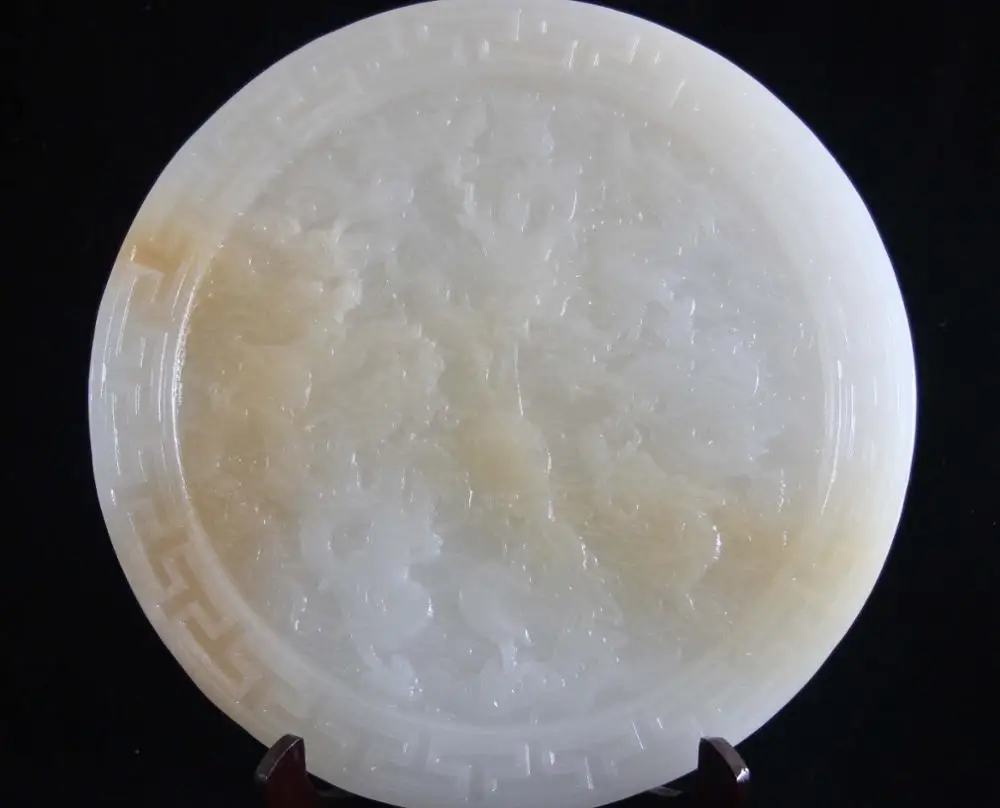 ORIGINAL White Jade Stone hand-carved China Feng Shui Nine Dragons Play Bead Wall Screen