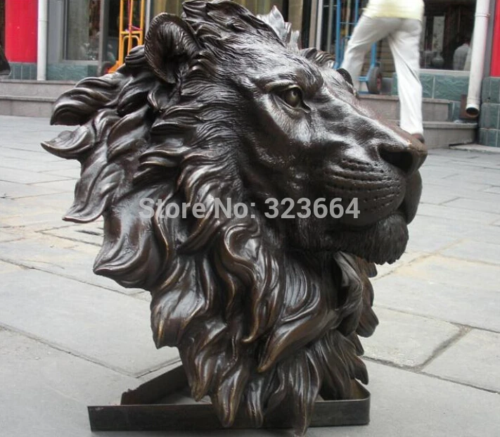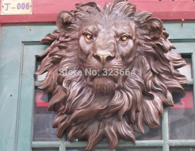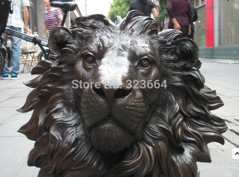 HIGH QUALITY Chinese Pure Bronze HSBC Lions Head Wall Hang Family Decor Art Sculpture