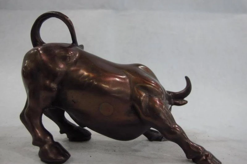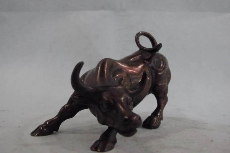 Chinese pure Red Bronze carve Wall Street wealth Bull OX Lucky Feng shui Statue