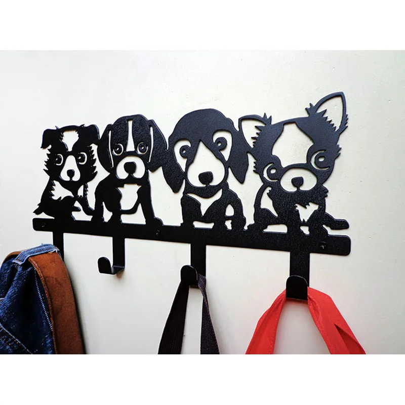 New Original Four Dogs Paper-cut Design Robe Hook Coat/Hat/Bag Cartoon Wall Hanger Home Improvement