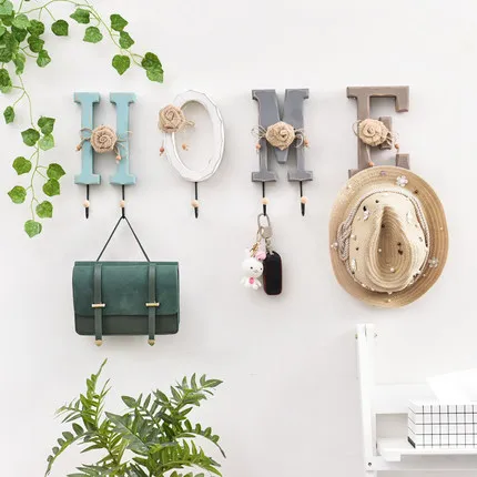 TOP American Letter/Number Wall Hook Decorative Coat Hanger Key Holder Wall Wooden Hooks Mounted Door H