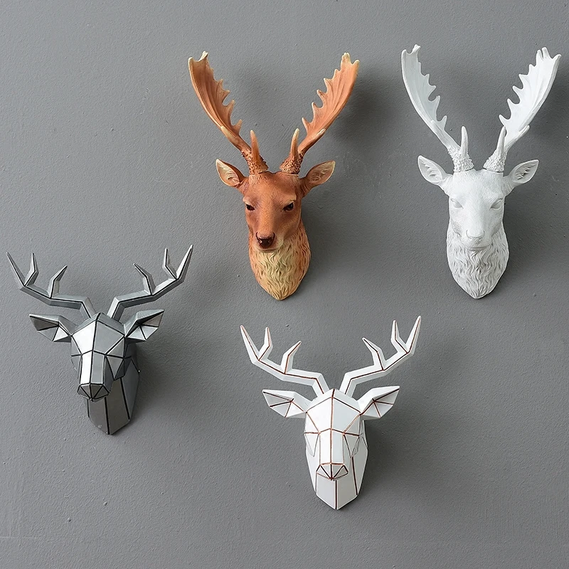 Review Top European simulation animal decoration deer head stereo creative living room mural resin crafts Wall