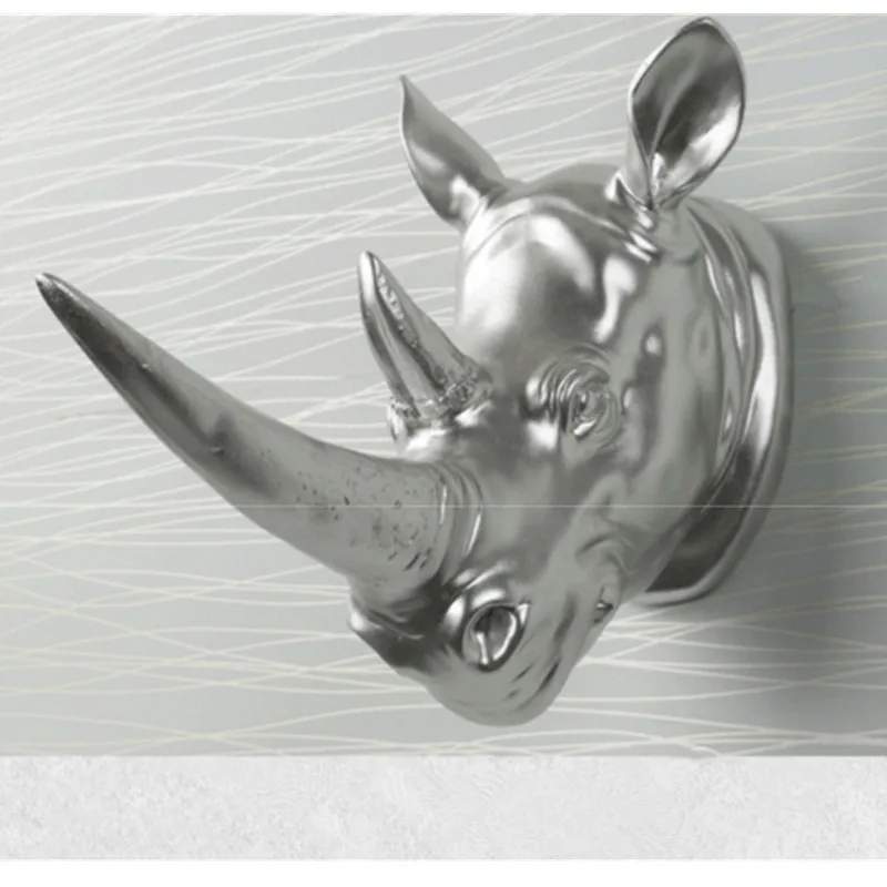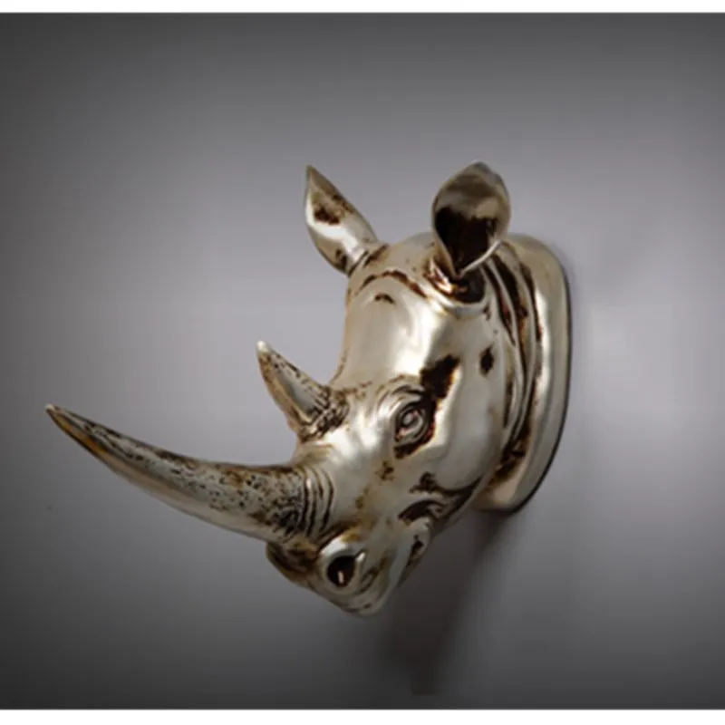 Exotic Rhinoceros Head Bust Figurine Animal Statues Resin Art&Craft Art Sculpture Wall Hanging Home