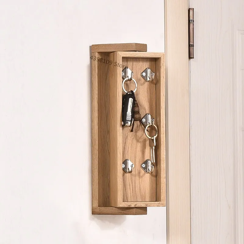 Nordic simple oak key hook creative living room wall hanging decoration rotatable hook multifunctio