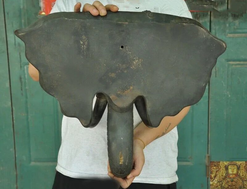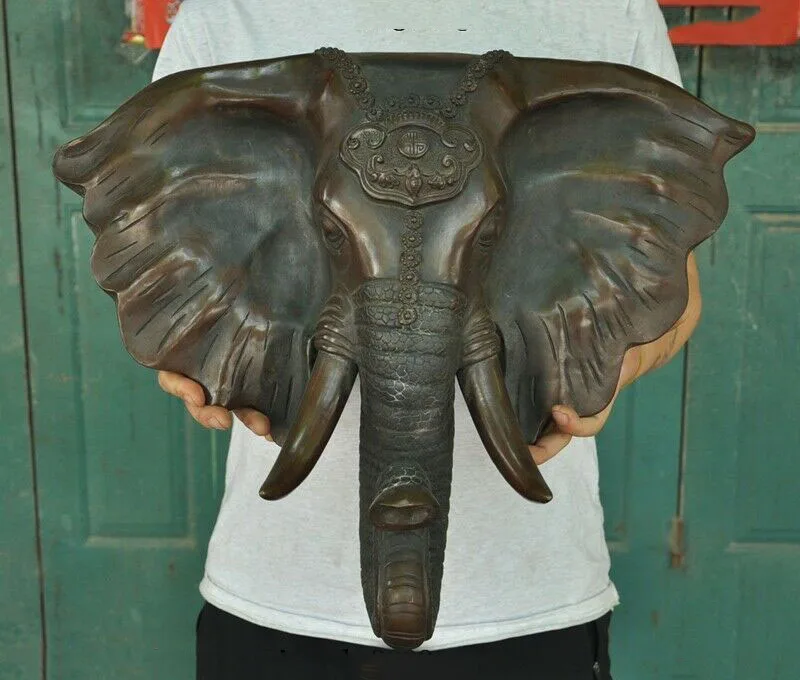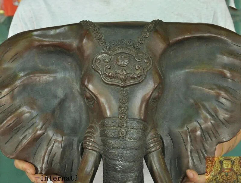 wedding decoration 21"Huge Chinese Feng shui Bronze lucky animal Elephant head Wall hanging statue